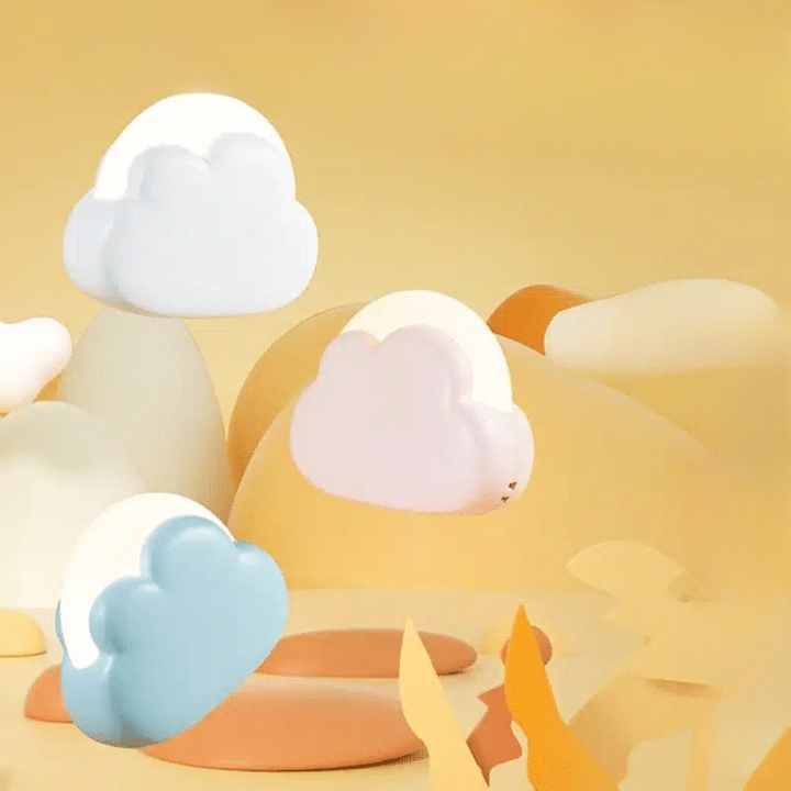 La veilleuse nuage est une adorable lampe en forme de petit nuage, avec un design arrondi et doux qui s’intègre parfaitement dans une chambre d’enfant.